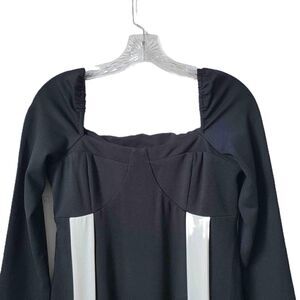 NEW Black Long Sleeve Bow Strap Square Neck Midi Dress Size Medium