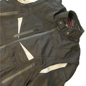 Stay stylish and protected with this sleek black motorcycle jacket. Designed for comfort and durability, it's perfect for any ride. I believe it was purchased as men’s but it could be for any gender! Elbows are reinforced.