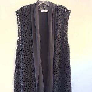 NEW Black Needle Lace LONG VEST with Chiffon Back, US XL, 46