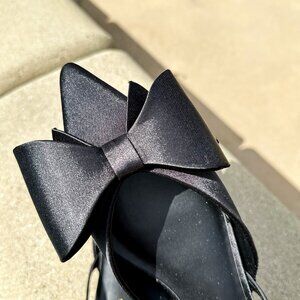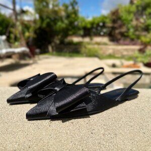 NEW🔥 Black Pointed Closed Toe OverSized Bow Slingback Ballet Flat Mules Slip-On