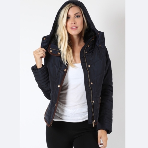 NEW Black Puffer Jacket w/ Hood, Black Fur Collar