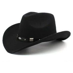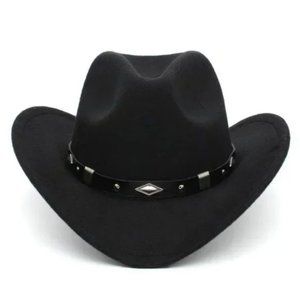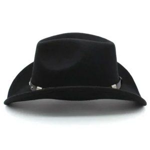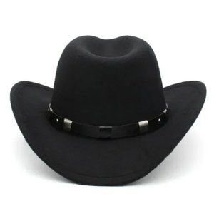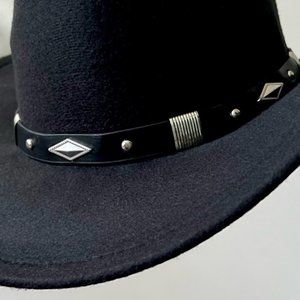 NEW Black Silver Stud Leather Band Embellished Felt Cowboy Cowgirl Western Hat