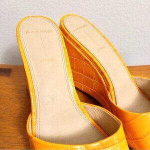 NEW Black Suede Studio Paloma Leather Wedge Heel 38 Bright Marigold Sandal Croc