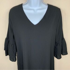 NEW Black V Neck Dress Bell Sleeve Ruffle Knee Length Medium