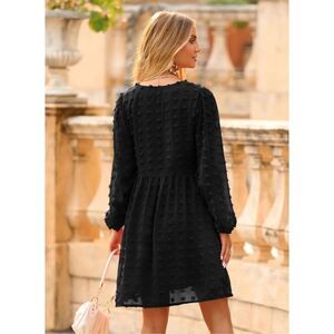 NEW Black V Neck Flowy Mini Dress Swiss dot Chiffon S