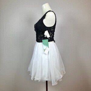 NEW Black & White Lace Plunge V-Neck Knee Length Cocktail Party Dress 1 NWT