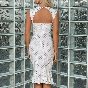NEW! Black & White Polka Dots Cut Out Ruffle Midi Dress