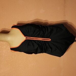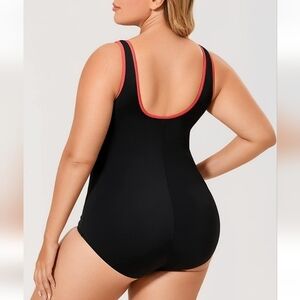 NEW! Black one piece swimsuit with bright coral trim Size 24W beach travel swim