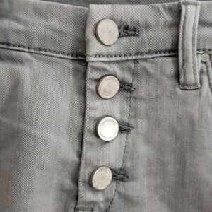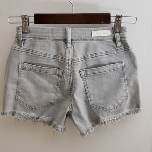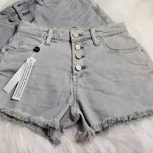 New Blank NYC Wedge short Button fly. Cut, frayed raw hems. Versatile light gray color.
