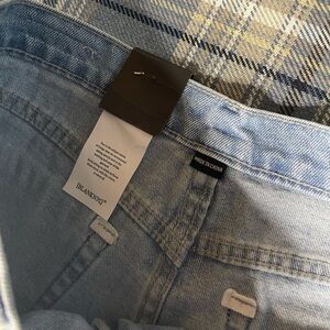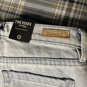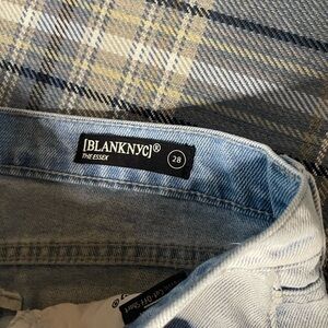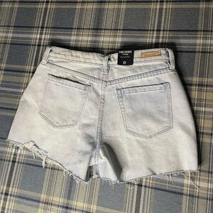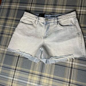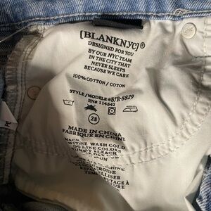 Blank NYC shorts, NWT Blank NYC denim, high-rise cutoff shorts, women's distressed shorts, light wash denim shorts, frayed hem shorts, summer casual wear, trendy denim shorts, new with tags Blank NYC, women's high-rise shorts, casual chic outfit, stylish women's shorts.