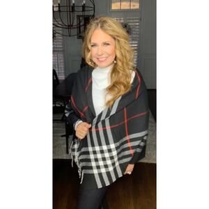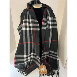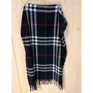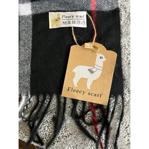 NEW Blanket SCARF Window Pane Plaid Black Red White Fringe Unisex Soft Fleece