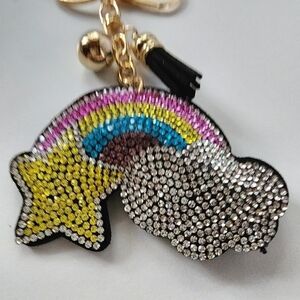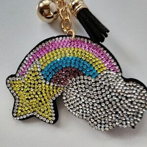NEW Bling Bedazzled Star Cloud Rainbow Tassel Keychain