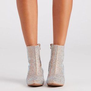 NEW🔥 Bling Champagne AB Rhinestone Crystal Block Chunky Heel Booties Ankle Boot