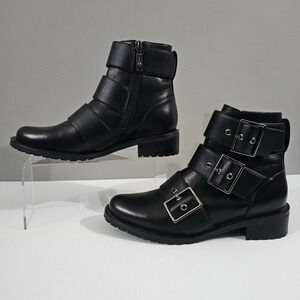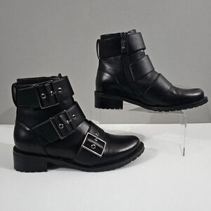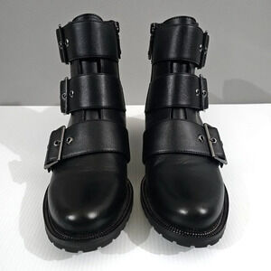 NEW Blondo Camila Combat Boot Womens 7.5 Black Leather Waterproof Buckle Ankle
