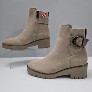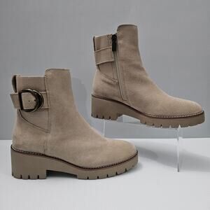 NEW Blondo Dakota Ankle Bootie Womens 10 Sand Suede Moto Waterproof Lug Sole