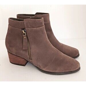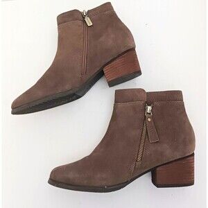 NEW Blondo Issac Waterproof Taupe Brown Suede Ankle Boot Zip Wood Block Heel 8M