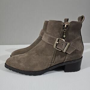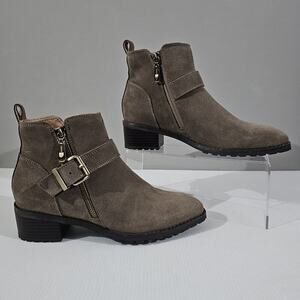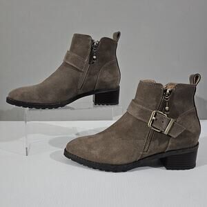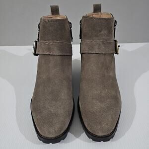 NEW Blondo Susan Zip Ankle Bootie Womens 7.5 Dark Taupe Suede Waterproof Moto