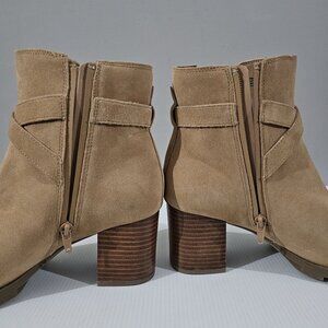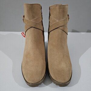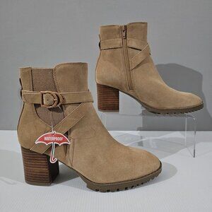 NEW Blondo Tamzin Ankle Boot Womens 8.5 Waterproof Tan Suede Fall Block Heel