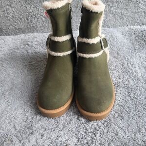NEW Blondo Waterproof Olive Green Suede Faux Fur Trim Buckle Ankle Boots 6M