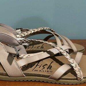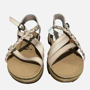 NEW Blowfish Malibu 8 Rose Gold Faux Leather Lotus Braided Rawhide Flat Sandals