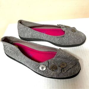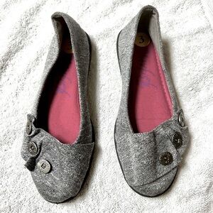 Canvas slip-on pumps with button detailing.