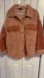 Chic teddy jacket with button closure. Features pink and tan tones. Ideal for layering.