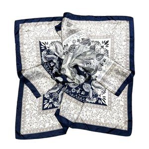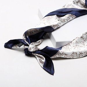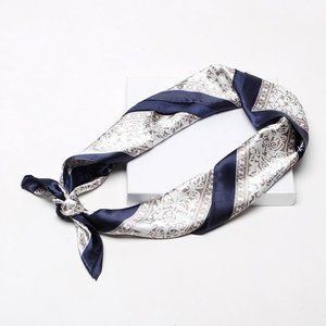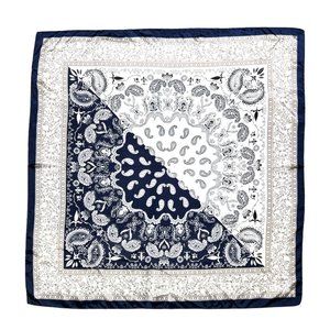 NEW Blue Ivory Paisley Floral Printed Square Silky Scarf Wrap