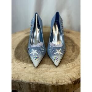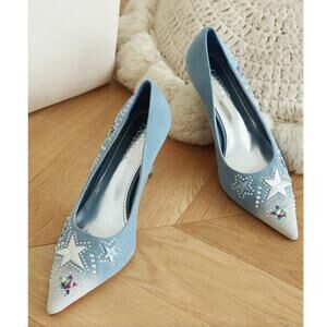 NEW Blue Jean Sparkly Rhinestone Star Embellished Denim Stiletto Heels