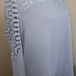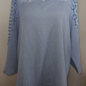 * NEW Blue Lace Sleeves STUDIO 1886 Pullover Top Ladies L 12-14
