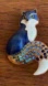 Charming fox brooch in blue and white. Features sparkling blue and green gem accents. Perfect for adding a whimsical touch to any outfit. 2.25” inch drop