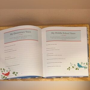 Brand new hardcover journal designed by Bluestreak Books. This beautifully designed Journal is a modern keepsake journal for grandfathers and grandchildren of all ages. Prompted writing journal that allows a grandfather to share his lifes accomplishments, journeys,memories and wisdom. Durable hardcover with blue, red, and brown leaf patterns. Perfect for memories and keepsakes. Brand new!