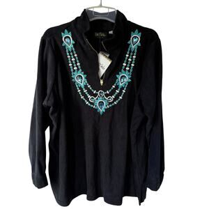NEW! Bob Mackie Black Fleece Acqua Rhinestone half zip up size 2X