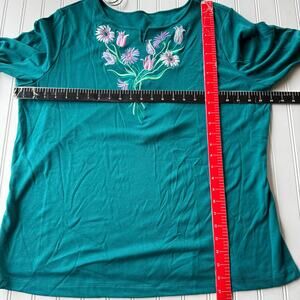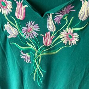 NEW! Bob Mackie Size XL Embroidered floral top green