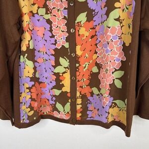 Keywords: Bob Mackie, Wearable Art, Cardigan Sweater, Floral Print, Silk Blend, Womens, Plus Size, Brown, Long Sleeve, Button Down, Vintage Style, Designer, QVC