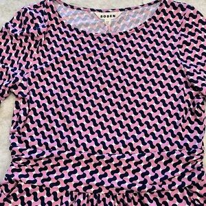 Flattering, feminine, and full of charm—this Boden Amelie Long Sleeve Midi Dress is a standout piece in a gorgeous pink and navy Terrace Swirl print. Made for comfort and style, it features a scoop neckline, fitted waistband, and a flowing midi-length skirt that flatters every figure. The soft jersey fabric and long sleeves make it ideal for year-round wear, whether you’re headed to the office, brunch, or a spring wedding.