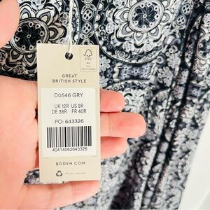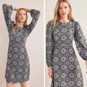 NEW Boden Crew Neck Print Mini Dress Black Paisley Pop Bohemian Preppy Retro