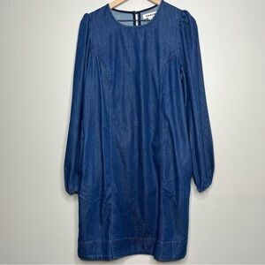 NEW Boden Denim Blouson Shift Dress US 12R Tencell Chambray Spring