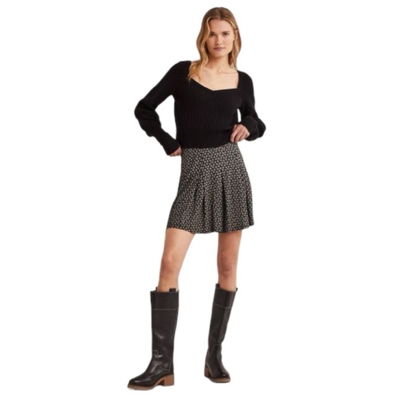 NEW Boden Jersey Mini Skirt Black Diamond Stud Floral Print Size 4
