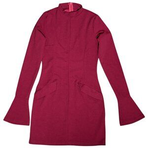 NEW Bodycon Burgundy Long Sleeve Dress With Bell Sleeves Size XS