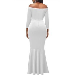 2.【Features】:This bodycon off shoulder long sleeve mermaid dress has a novel design ,and it designed with a small floral shaped ruffle at the waist, so it especially friendly to you with a larger abdomen , it can well hide the fat around the waist and make you look more slim.