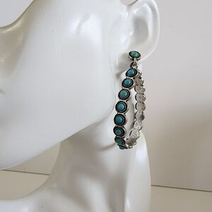 Amazing antique metal teardrop ovale shape dangle earrings featuring a turquoise natural stone embellished.