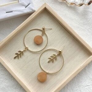Super Cute! Lightweight gold leaf wooden circle dangle drop earrings