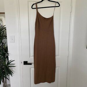 NEW Boho Glam House of Harlow 1960 Brown Ribbed One Shoulder Midi Dress Size M