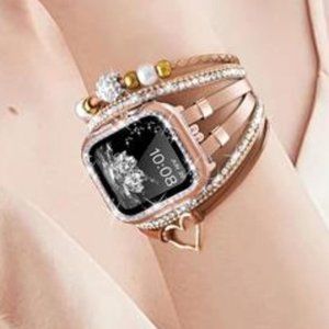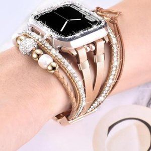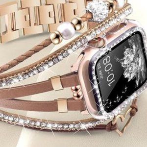 NEW Boho Leather Beaded Natural Stone Apple Watch Band with Case