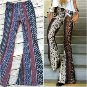 NEW Leggings Under $50 Boho Hippie Pants Leggings Gypsy Style Flared Leg New With Tag from Vibe. Sooo cute in printed stripes with wide flare at the bottom. Trending Hippie Clothing Hipster Women Girls Pants Tween Teen Adult Bohemian Festival Wear Burning Man. 96% soft polyester, 4% spandex. Beautiful rich colors and vertical lines are very slimming! Very soft fabric!