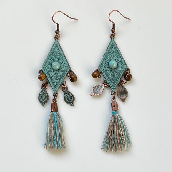 Keywords: bohemian, charm, drop, long, statement, summer, bright, copper