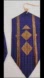 Bohemian blue cut suede fringe dangle earrings with golden details - aztec pattern.