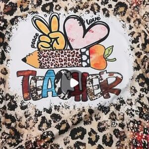 NEW! Every teacher needs this t shirt to wear to school this fall! Cute screen printed front with a pencil, peace sign and a heart! This is available in a women's size Large (10-12) or X-Large (14)