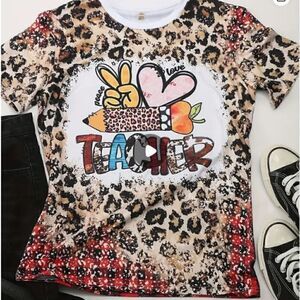 NEW! Boho TEACHER Leopard Print Buffalo Plaid T Shirt School Teaching Love Hip
