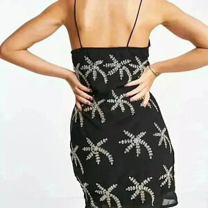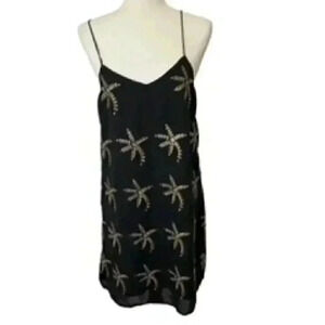 NEW Bonheur D’amour Black gold Embroidered Chiffon Slip Dress Women’s Large NWT